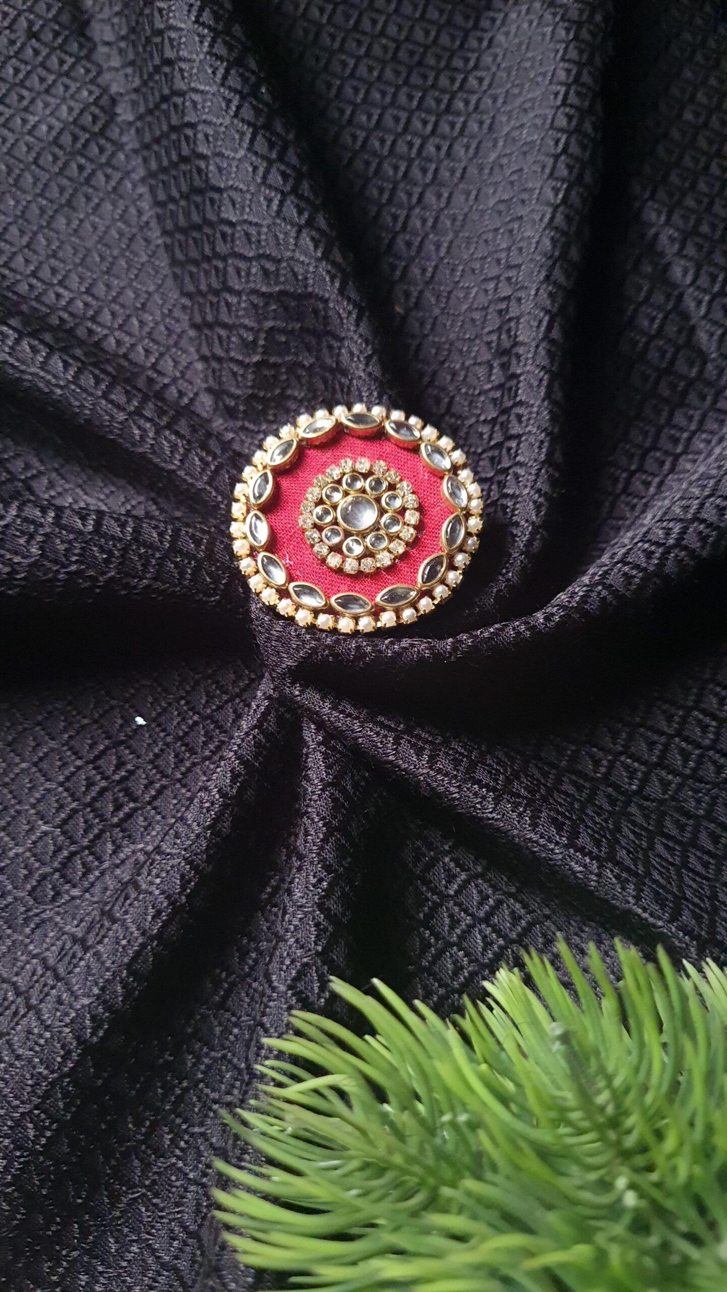 Silk Febric kundan Ring (Adjustable)